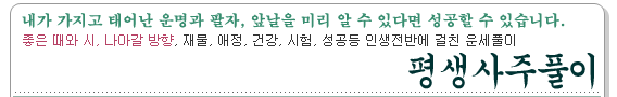 Æò»ý»çÁÖÇ®ÀÌ´Â »çÁÖÆÈÀÚÀÇ Å¸°í³ º¹°ú ¿î¸íÀ» Ç®ÀÌÇÏ¿© ¾Õ³¯À» ¹Ì¸® ¾Ë¼ö ÀÖÀ¸¸ç ÁÁÀº½Ã±â¿Í